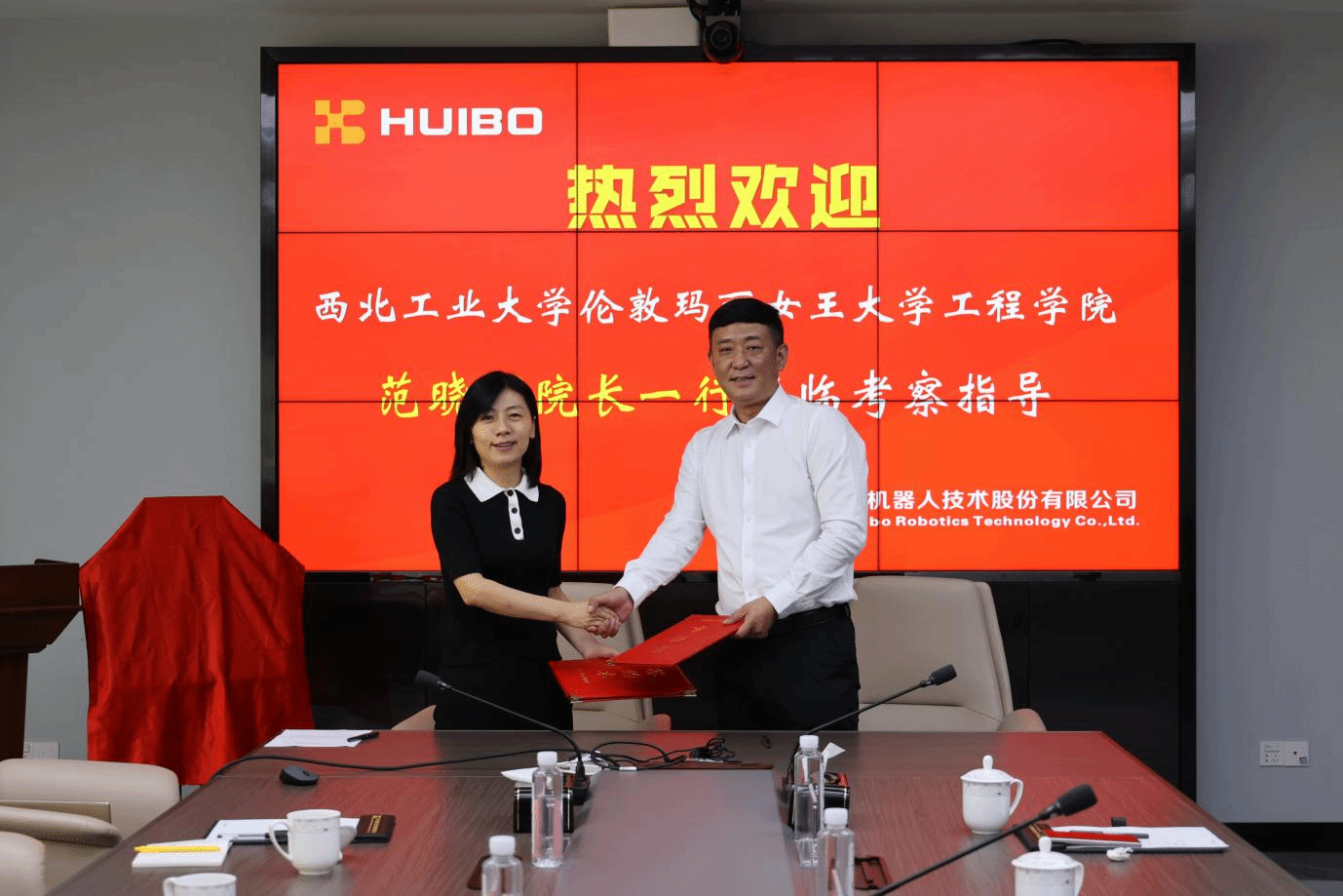 最后,双方领导就共建本科生智能机器人技能竞赛、工程训练实践模块的达成初步合作意向。崔晓辉表示,汇博机器人公司与科沃斯机器人等公司之间有着良好的合作基础,与此同时公司作为高职机器人技能竞赛设备提供和技能培训单位,发挥了至关重要的作用。此外,公司历史上也积累了广泛的国际合作经验,和williamhill中文官网以及西北工业大学服务“一带一路”倡议的愿景高度契合。双方均深信此次合作在师生科研课题、国际化实践教学方面将能够取得卓越的成就。