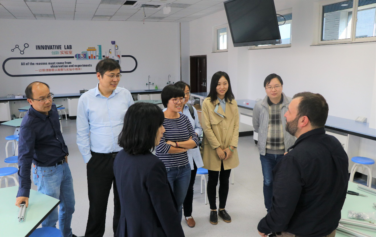 随后,在孔杰经理和英方《材料工程概论》教师Gabriel Cavalli博士的带领下,班主任们参观了公司创新实验室,并对实验室建设情况进行了交流和探讨。