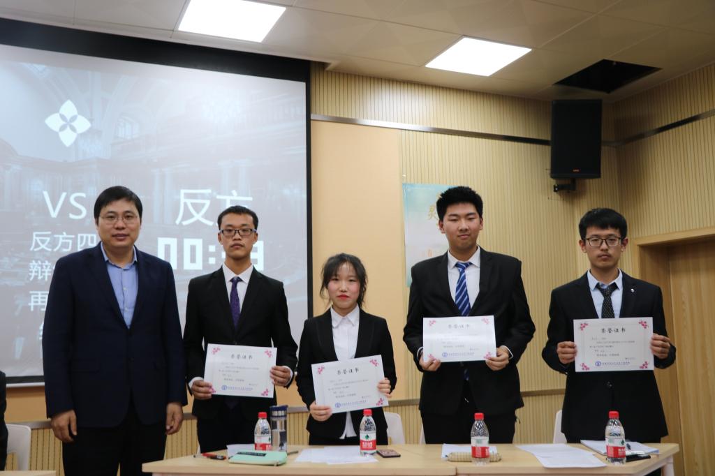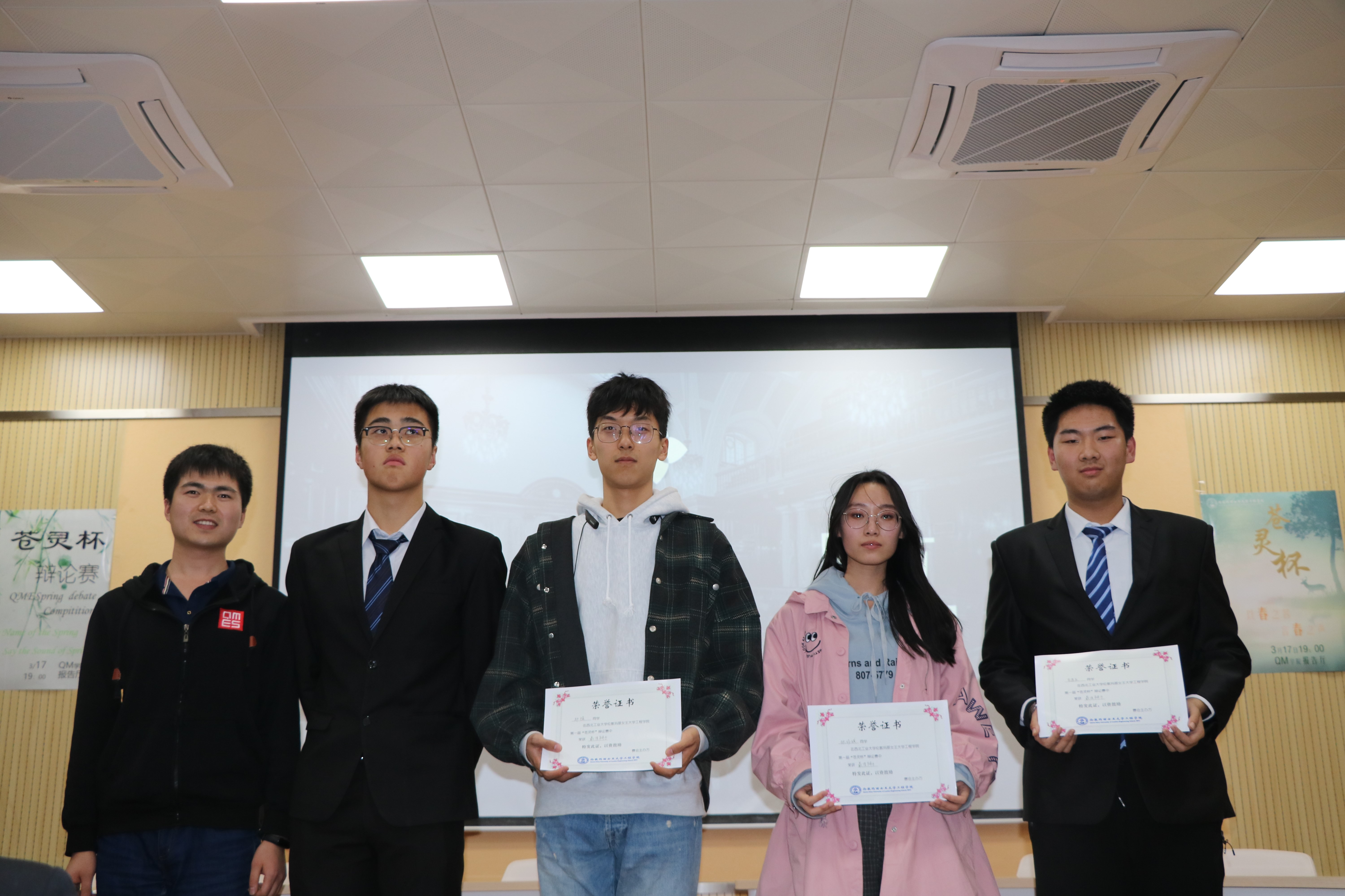 本次“苍灵杯”辩论赛四强的另外两队,“我想和蔡徐坤一个篮球队”与“这位辩手你说的不队,以及在初赛和复赛阶段的最佳辩手张修琪、邢扬、郑植、丁德一和李逸辰,一同走上领奖台,收获成长的喜悦。