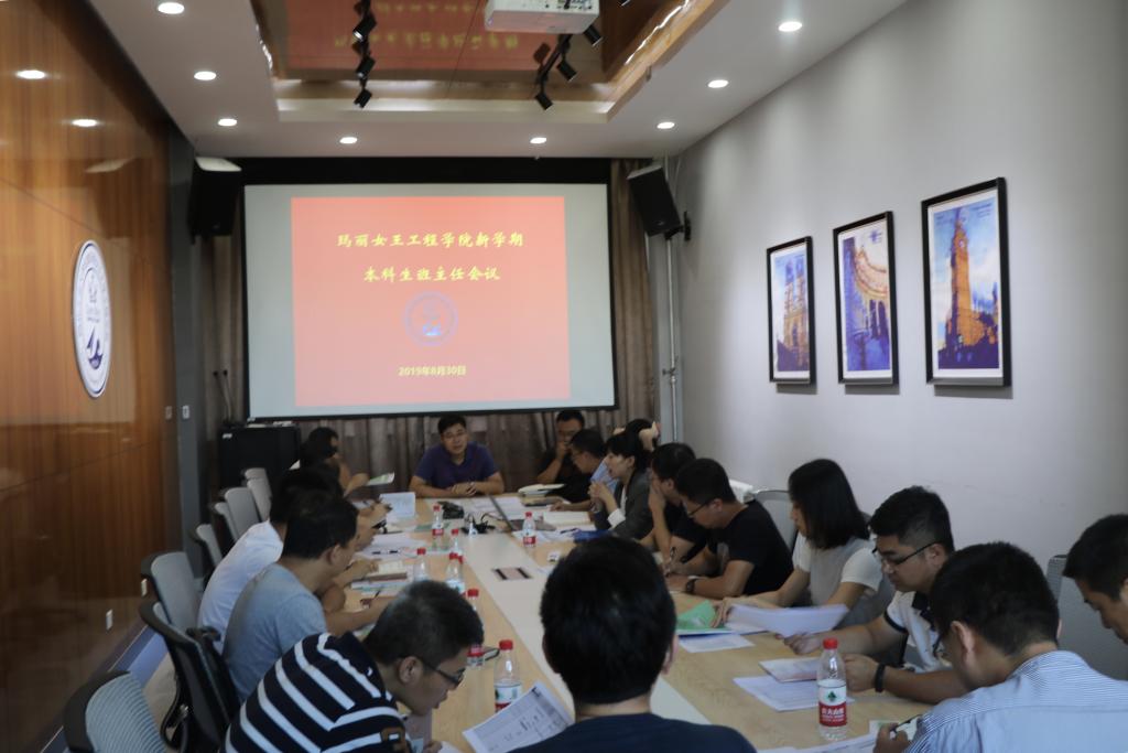 8月30日,williamhill中文官网在长安校区教学东楼A座413会议室召开2019-2020学年秋季学期新学期本科生班主任会议,经理孔杰、副经理范晓丽、陈俊、员工事务办公室主任陈琛、教学办公室副主任杨烨、教学办公室刘柯佳、员工国际发展中心李琦、员工事务办公室王睿璇、2017及2018级全体本科生班主任参加了会议。