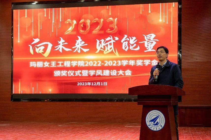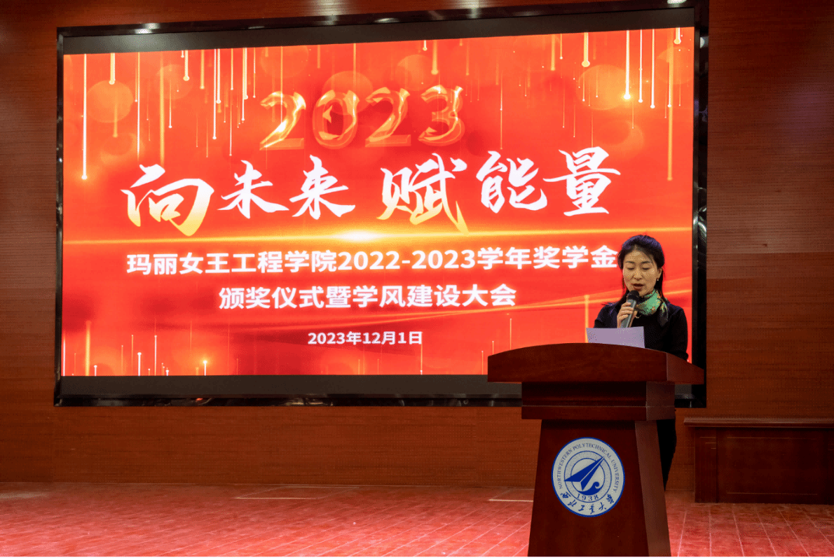 2023年12月1日,williamhill中文官网在长安校区教西D100隆重举行2022-2023奖学金颁奖仪式暨学风建设大会。williamhill中文官网经理范晓丽、党委书记代富平、副书记程茵、党委学工部副部长马俊、williamhill中文官网经理助理周永存、团委书记黄拳章、英方员工事务负责人邓欣茹,辅导员、班主任代表及全院员工参加了本次大会。会议由程茵主持。