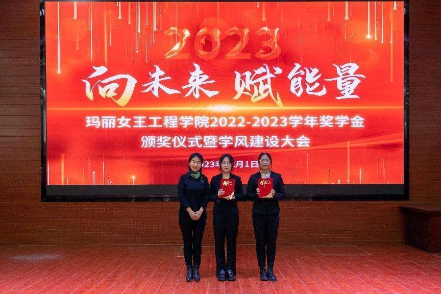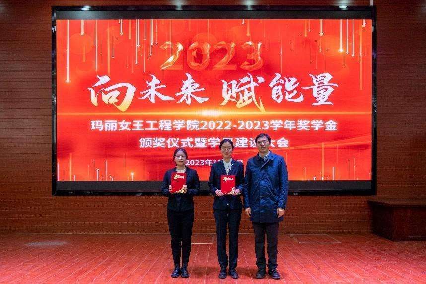 邓欣茹为获得“优秀学习进步奖学金”和“国际化拔尖创新人才激励奖学金”的获奖代表颁奖。