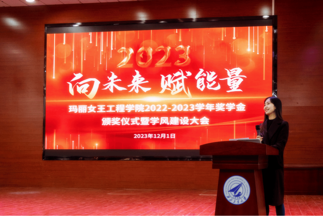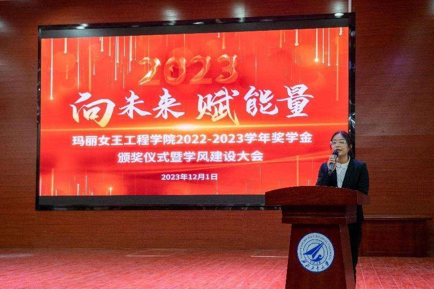 大会第一项,由范晓丽经理致辞。她对获奖员工表示了积极肯定与热烈祝贺,并向同学们提出了殷切期望:希望大家可以始终保持追求卓越的态度,不断增强自身的国际竞争力、珍惜大学时光并全方面锻炼自己。同时,她也希望广大玛丽学子以本次获奖的同学为榜样,以见贤思齐的态度为建筑的石,厚积薄发,建造出属于自己的大厦,以扎实的专业知识为手中的利剑,披荆斩棘,开辟出通往梦想之路,以与日俱新的思想为飘扬的帆,劈波斩浪,在开创未来的航线上领航。