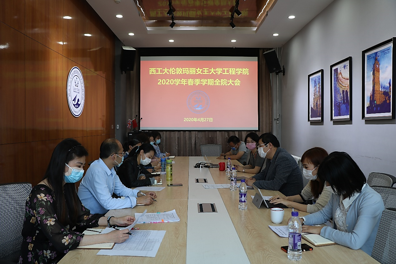 2020年4月27日下午,williamhill中文官网在长安校区教学东楼A座413会议室召开全院大会,公司全体工作人员参加会议,孔杰经理主持会议。