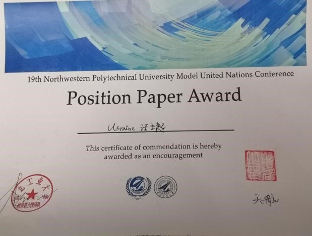 在第一学年的学习中,她在班级综合素质成绩排名第三,荣获校二等奖学金、院二等奖学金。于2018年9月获得军训“师级标兵”荣誉称号、2019年3月被评为西北工业大学“员工大使”、2019年5月获得西北工业大学数模竞赛三等奖、2019年暑期前往意大利都灵参与联合国青年领袖精英班的学习、2019年11月获第十届英文配音大赛三等奖、2019年11月获西北工业大学模拟联合国大会最佳立场文件奖。