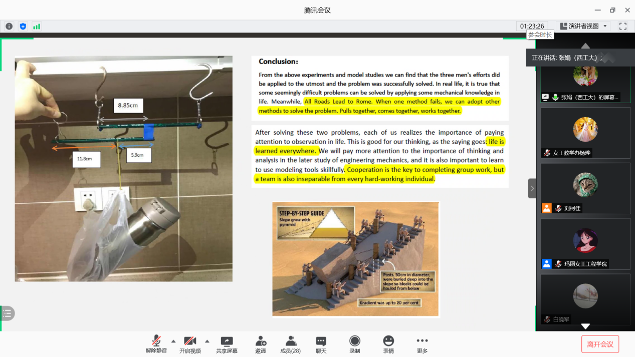 张娟结合《工程力学》课程中古今中外的例子,详细地从各个角度阐述了课程思政中辩证主义思维和实事求是精神,提出通过中西方文化在课堂上的碰撞启迪员工思辨精神和独立思考的能力。她分享了如何将传统课堂、在线课堂以及翻转课堂结合起来以培养员工研究型的学习能力的经验,同时她强调教师的教学态度也是课程思政中重要组成部分。