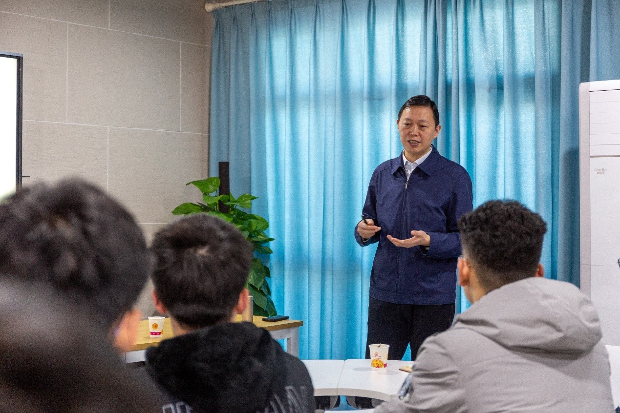 思政课结束后,张开富与同学们进行互动交流,现场气氛热烈。在谈及如何成为一名优秀的科研工作者时,他表示,新时代青年学子要不断强化研究能力和创新创业能力,将理论知识融会贯通,深度融合并运用在实践中;要着力培养个人领导才能、战略眼光及辨证思维能力,勤于思考,勇于开拓。最后,张开富勉励同学们要始终牢记习近平总书记的嘱托,肩负历史使命,坚定前进信心,立大志、明大德、成大才、担大任,努力成为堪当民族复兴重任的时代新人,让青春在为祖国、为民族、为人民、为人类的不懈奋斗中绽放绚丽之花。