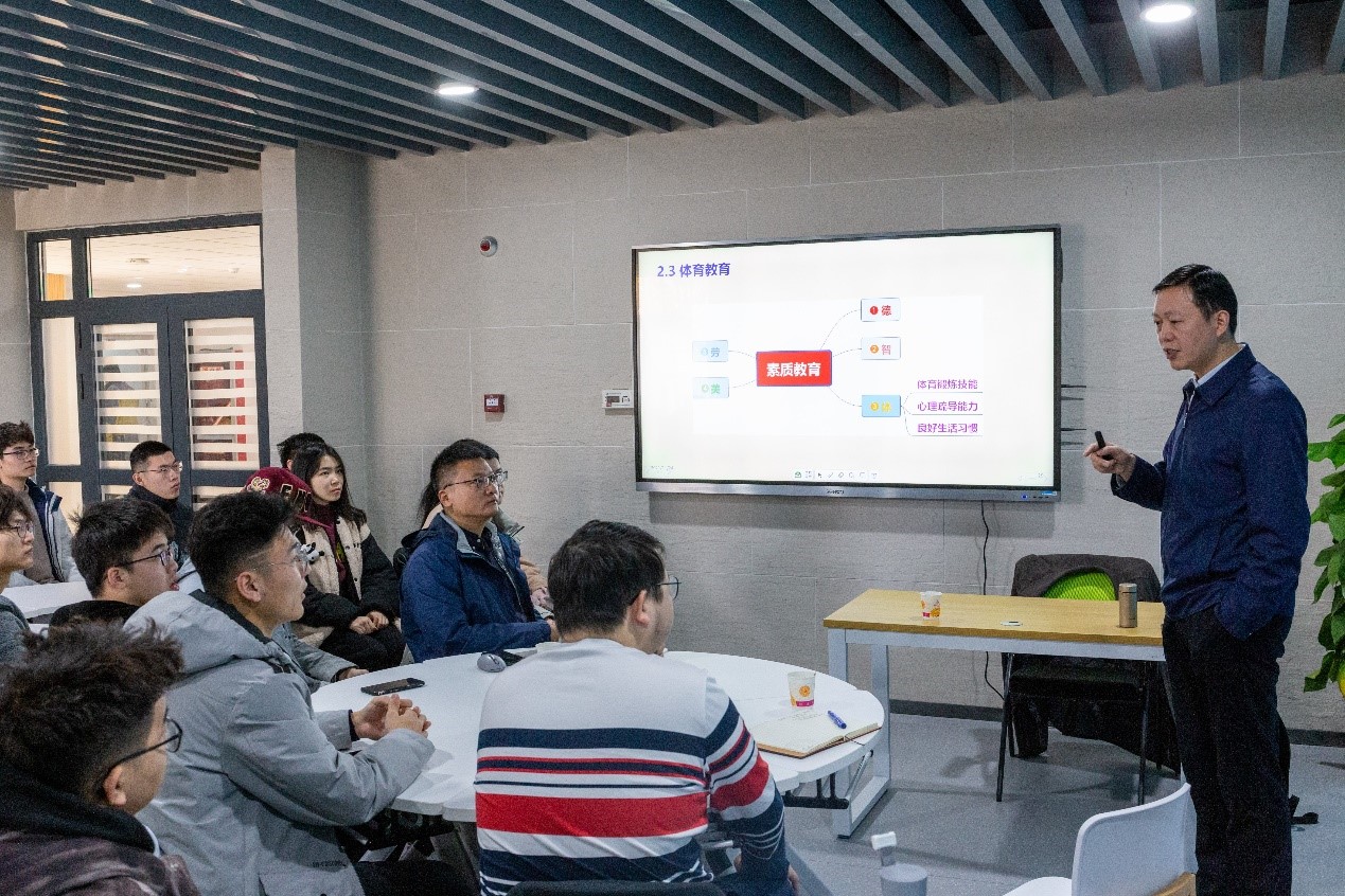 11月24日上午,董事长助理张开富在海天苑启真社区为williamhill中文官网及教育实验公司员工代表讲授了一堂别开生面的思政课。玛丽女王工程公司党委书记代富平、教育实验公司党委副书记康鹏军、校团委书记周凯参加了本次思政课。