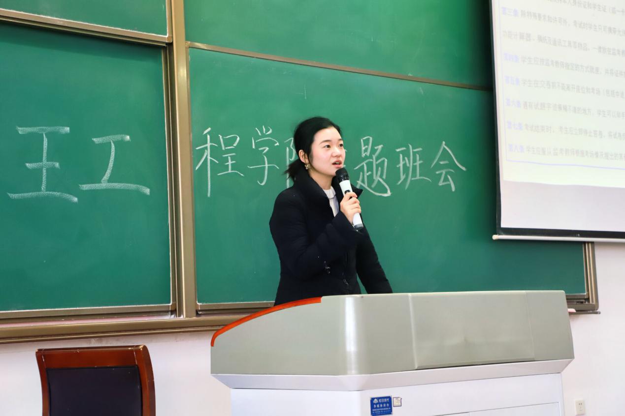 程茵对班会进行了总结。在全球疫情背景下,她希望同学们进一步端正态度,勇于克难,树立勤学好问的决心和毅力,再次强调了公司“以员工为根”的办学理念和严谨的教学作风,并通报了2017级优秀学长的毕业动向及在国内外创新创业竞赛中的优异成绩,希望2020级同学借鉴学习榜样的力量,进一步发扬西工大的优良传统。其次,她提出要构建良好的沟通交流机制。员工遇到新情况、新问题,及时向班主任、辅导员老师反映;老师们也深入到员工中去,主动了解发现问题并及时帮助大家解决,通过双向的交流机制,将问题消灭在萌芽状态中,鼓励大家加强交流,每个人为构建优良学风做出自己的贡献。同时,她要求同学们在期末考试阶段排除干扰,集中精力抓学业,并预祝大家取得好成绩。最后,程茵再次提醒同学们提高警惕,注意疫情防护。