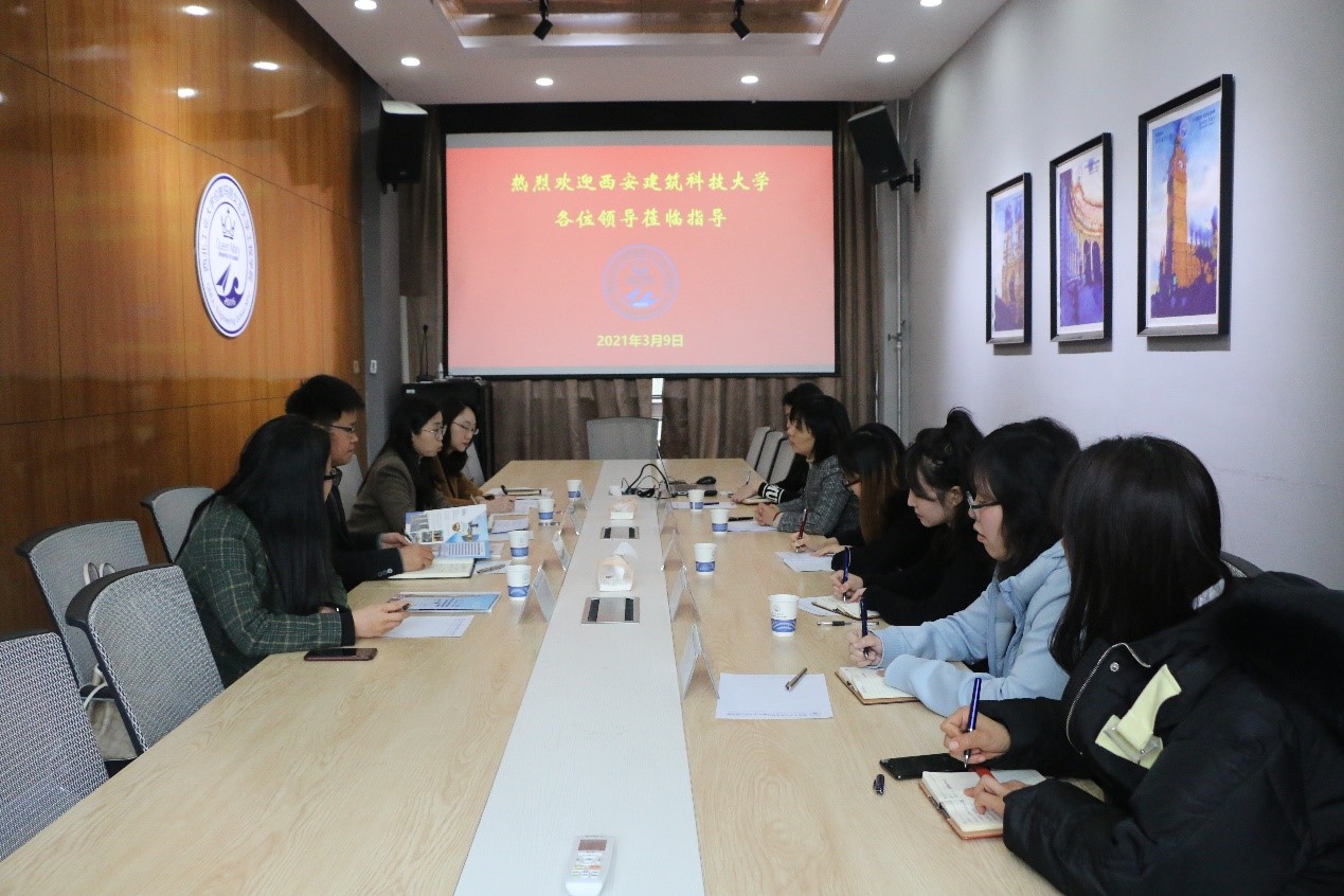 2021年3月9日下午,西安建筑科技大学国际交流合作处副处长王春梅、科长卢佳萌、环境与市政williamhill中文官网副经理张海涵、王茹教授一行4人来williamhill中文官网调研,williamhill中文官网副经理范晓丽、程茵在公司413会议室接待了来宾,公司相关工作人员参加会议。