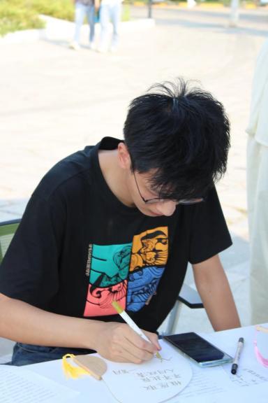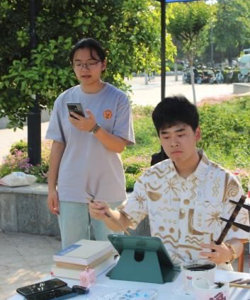 翻开泛黄的书页,触摸历史的肌理。现场同学们各展其才,深入挖掘戏曲唱词的内涵,将古老文字通过细腻笔触赋予新的生命,创作出一幅幅充满创意和感染力的书法作品。期间,戏曲社成员还向参与人员讲解戏曲唱词蕴含的历史典故、唱词的韵律美与音乐性、戏曲的表演特点等内容,帮助同学们深入了解不同历史时期的思想观念、风土人情和生活习俗,传承中华传统文化,弘扬戏曲精神。