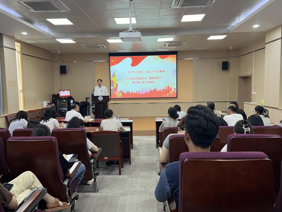9月1日下午,williamhill中文官网在长安校区教学东楼A座410报告厅召开全院大会,学习贯彻党的二十届三中全会精神,传达公司暑期务虚会暨新学期中层干部会的会议精神,部署秋季学期全院工作。经理范晓丽、党委书记代富平、执行副经理玛丽亚·罗梅罗·冈萨雷斯、副经理王永欣、党委副书记程茵及全体教职工参加本次会议。会议由代富平主持。