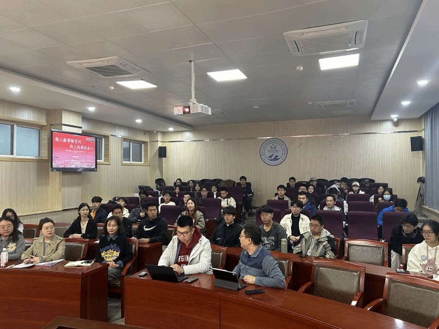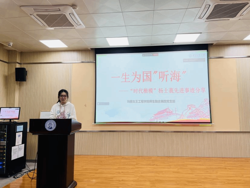 大班团支书马艺格同学介绍了杨士莪院士的生平事迹、卓越成就及崇高理想,强调其一生追求真理、淡泊名利、甘于奉献,为我国水声事业做出杰出贡献。她号召同学们以杨院士为榜样,不忘初心、牢记使命,秉持理想信念、严谨科研态度和无私奉献精神,为实现中国民族伟大复兴的中国梦贡献青春力量。