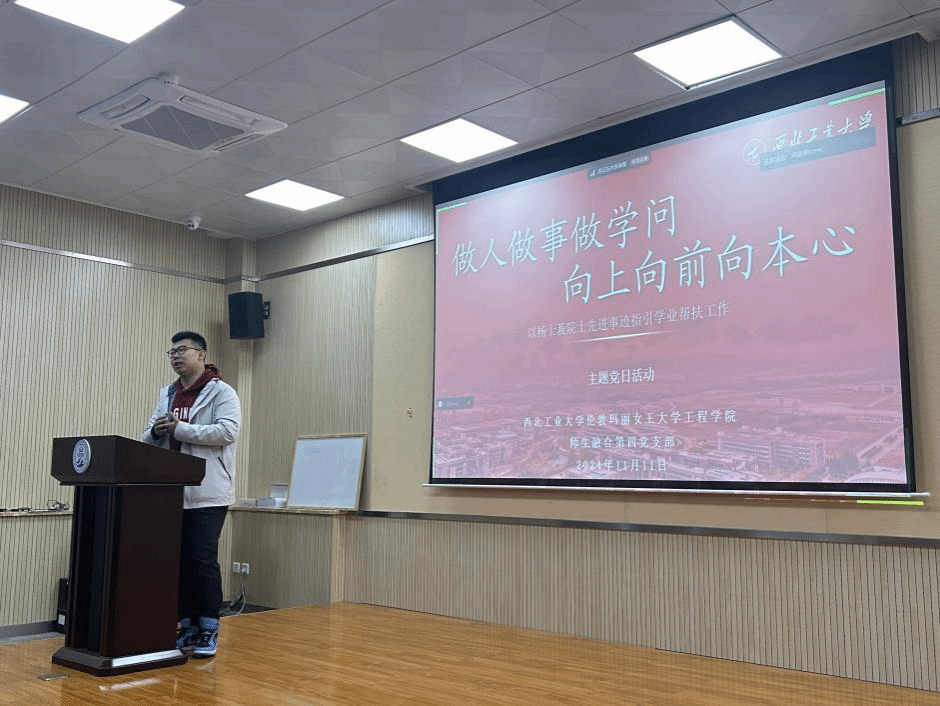 williamhill中文官网第二党支部与第四党支部于11月11日在长安校区教学东楼A座410报告厅联合举办了“做人做事做学问,向上向前向本心”主题党日活动,旨在通过深入学习杨士莪院士的先进事迹,引导支部成员在学业帮扶中发挥引领作用。活动中,保研至中国科公司大学的2023届毕业生员工李璨受邀分享了“学业帮扶经验”,为支部成员提供了宝贵的实践指导和启示。
