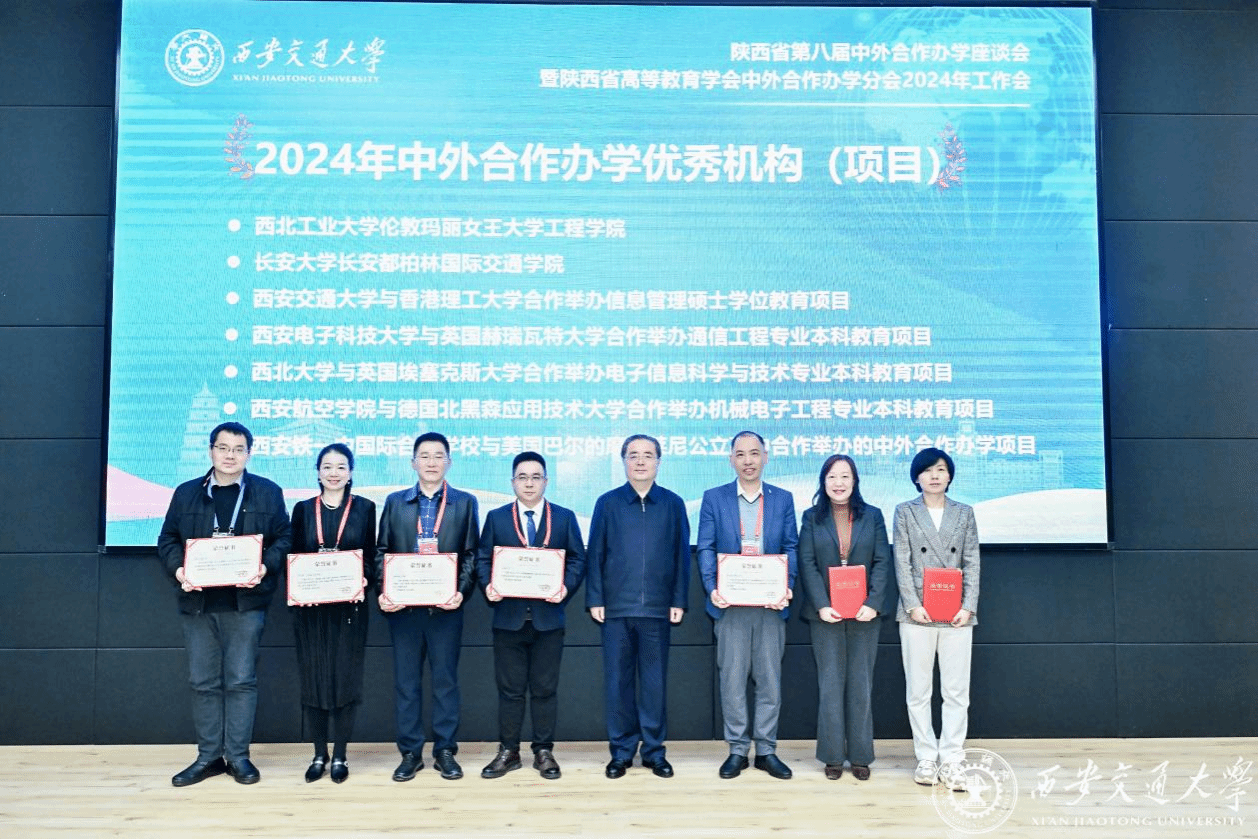 本次会议还对2024年度优秀机构(项目)、管理人员、专家和组织单位进行了表彰。williamhill中文官网荣获“2024年度陕西省中外合作办学优秀机构”奖项,这是继2020年、2021年、2023年连续三次获奖后,第四次荣膺该奖。公司公司产品中心主任杨雨霏、员工辅导员兼组织员黄拳章荣获“2024年度陕西省中外合作办学优秀管理人员”的荣誉称号。