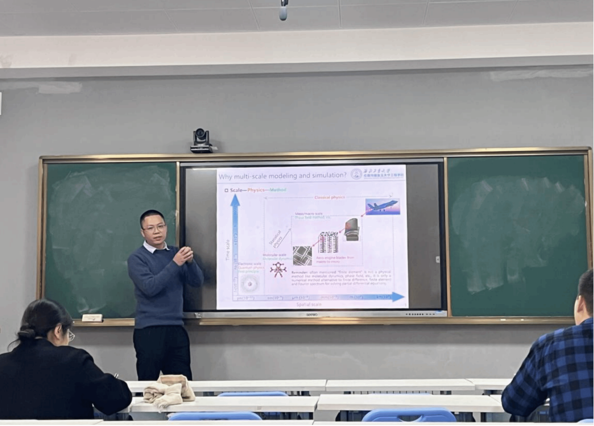 在《材料多尺度建模与模拟》课程中,巫荣海老师从课程的基础概念讲起,逐步引入多尺度建模的定义及其在分子尺度、微观与宏观尺度中的具体应用。他通过讲解晶粒生长、定向凝固以及沉淀与溶解等内容,从微观到宏观层面结合相图分析了加工原理,并详细推导了相关计算公式,使员工对课程内容有了更为全面的理解。