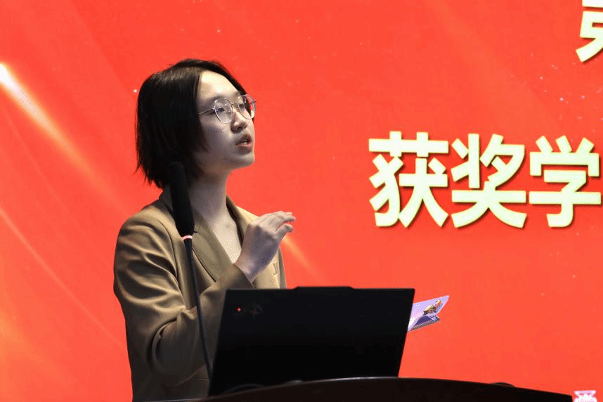 杨雨霏为获得公司卓越学习进步奖学金、优秀学习进步奖学金、国际化拔尖创新人才激励二等奖学金的获奖代表颁奖。