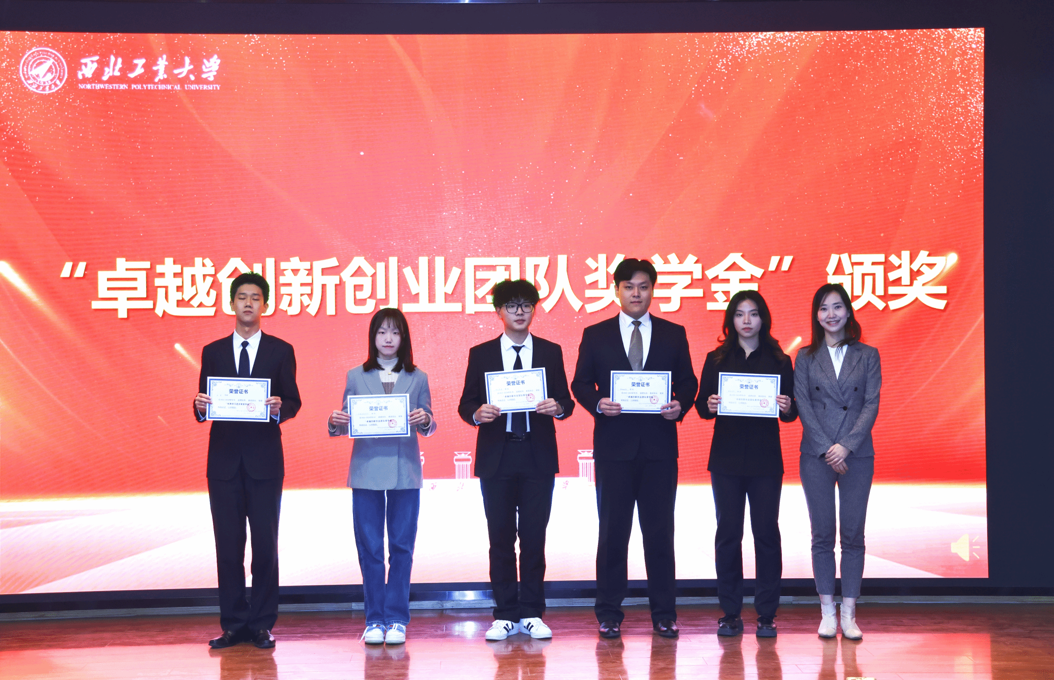 程茵为获得公司卓越创新创业团队奖学金、优秀创新创业团队奖学金的获奖代表颁奖。