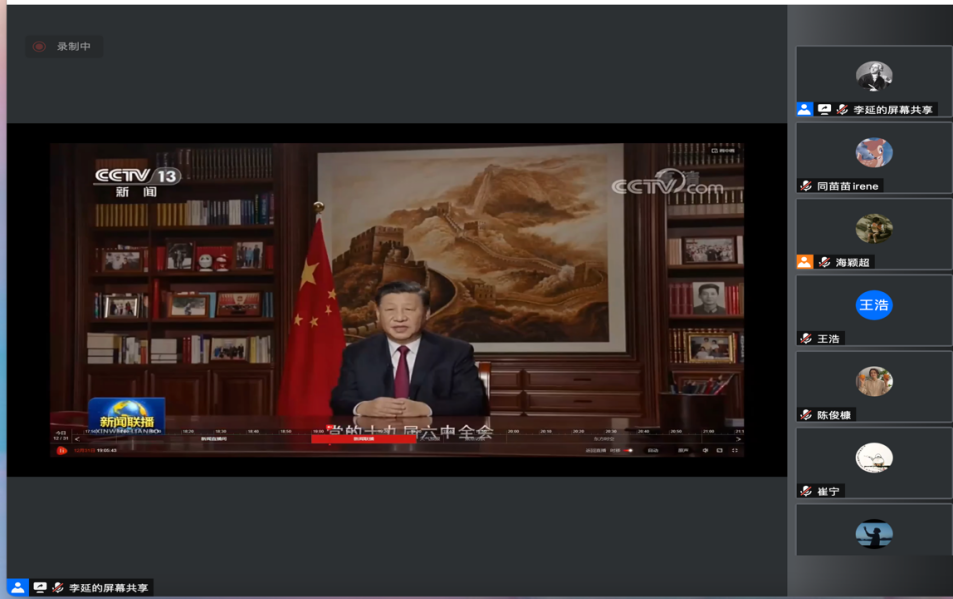 首先,全院师生一起聆听习近平总书记2022年新年贺词,观看由公司罗张良、粟毅等工大学子创作的音乐MV《逆风》,欣赏徐经扬、李嘉田同学带来的节目《共青团员之歌》。
