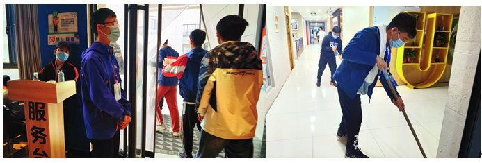 接下来,志愿者们在院员工的组织下陆续开展了多元化的学雷锋特色活动,共举办32次志愿服务,37名同学报名参加,累计志愿服务263小时。活动主要包括:办公楼各教室、仓库和启真社区的卫生清扫、宿舍大扫除及宿舍文化风采展示,海天苑食堂后勤体验以及公寓楼管工作体验等。同学们积极报名,奋勇争先,始终坚守在各自的岗位上,用实际行动和热情的服务,践行雷锋精神。符景浩、谭智、邱焕添、冯王健阳等同学风雨无阻,准时前往海天苑食堂协助工作人员维持秩序;王子健、江梓歆同学也凭借出色的工作获得了公寓楼管的赞扬。志愿者们以不辞辛苦、任劳任怨的服务态度,积极地践行着志愿服务精神,协助后勤人员更好地完成工作,受到了海天苑食堂经理和后勤部门领导的一致好评。