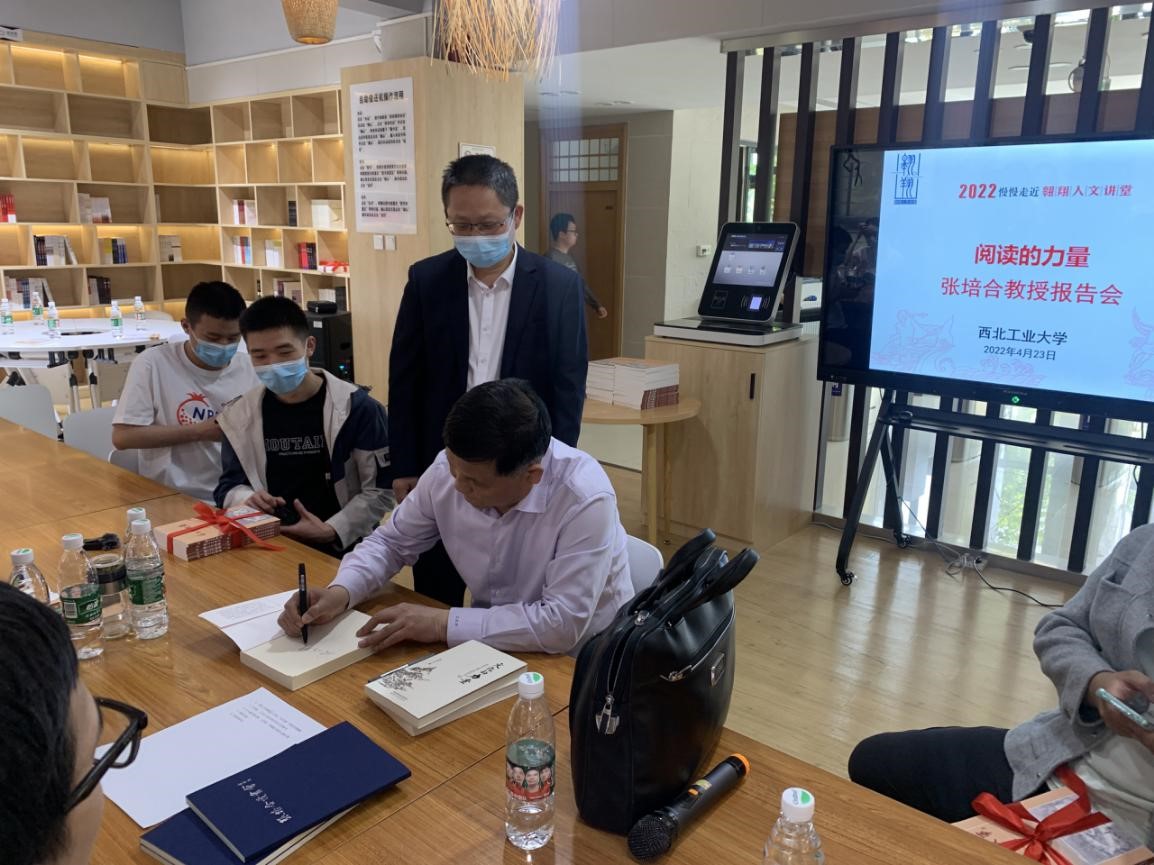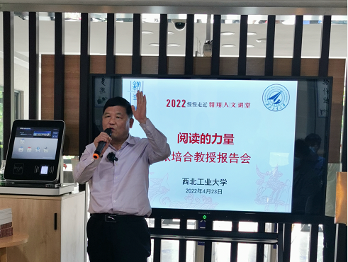4月23日世界图书日,由党委员工工作部主办、williamhill中文官网承办的“翱翔人文讲堂”之《阅读的力量》在海天苑启真社区“四方阁”书吧举行。西北大学中国文化研究中心秘书长张培合先生应邀担任本次报告会的主讲人。williamhill中文官网、教育实验公司师生代表参加了本次报告会。