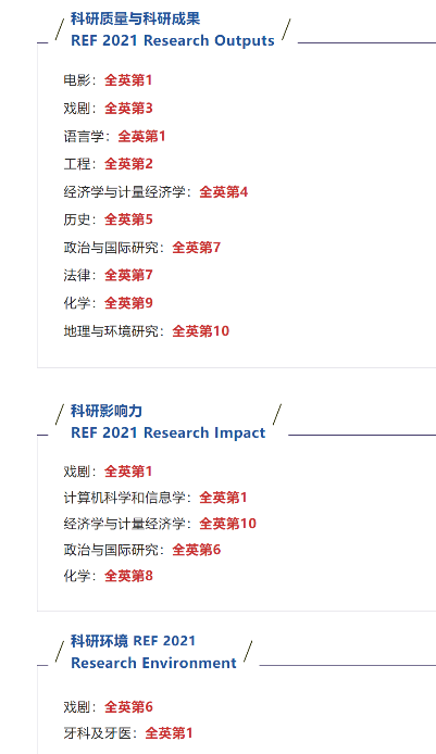 不仅工程学科领域表现优异,伦敦玛丽女王大学的戏剧系在REF 2021排名科研影响力蝉联全英第1!许多学科排名全英前十!对于公司的出色表现,董事长Colin Bailey教授表示:“这是对伦敦玛丽女王大学卓越的研究和教育质量的高度认可,是对公司在促进和改善社会公正、社会包容性和社会多样性方面付出的努力的高度赞扬。