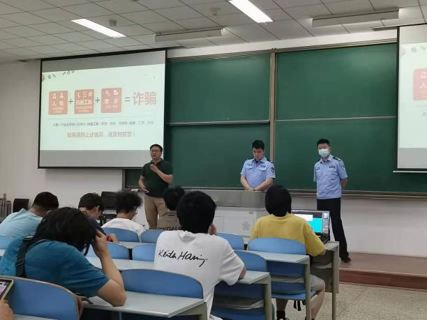 首先,王警官向同学们介绍了什么是电信诈骗,并且列举真实发生在同学们身边的案件。案件的数量之多和犯罪分子们的无孔不入让同学们感受到电信诈骗离我们并不遥远,有效提高同学们的防范意识。之后,王警官结合自己2019年赴缅北抓捕境外电信诈骗犯罪嫌疑人及近年来参与反诈宣传的亲身经历,警示同学们提高反电信诈骗意识。他强调,防电信诈骗不仅是保护自身财产安全,也是在为国家做贡献,并建议同学们遭遇电信诈骗时不要慌张,及时向当地派出所报案,警察同志们会第一时间帮助大家及时止损。