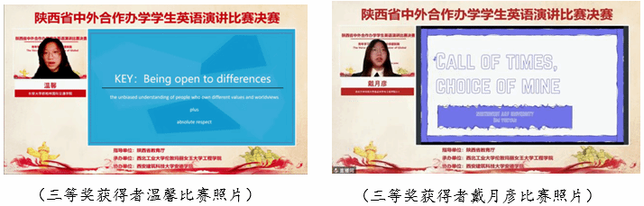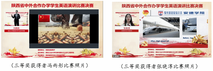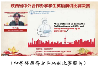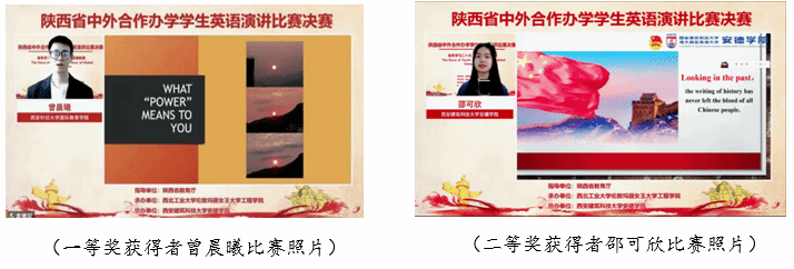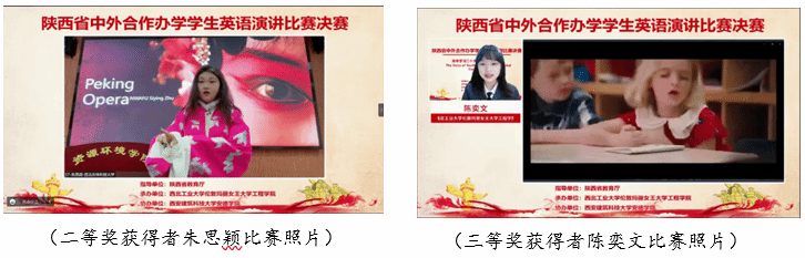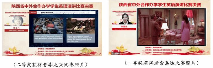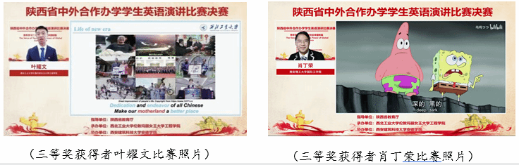 经过评委老师的综合评审,来自williamhill中文官网的许玮航同学拔得头筹,荣获比赛特等奖,西北大学萨兰托文化遗产与艺术公司潘逸云同学、西安电子科技大学中美项目王珂同学、西安财经大学国际教育公司曾晨曦同学获得一等奖;西安建筑科技大学安德公司邵可欣同学、长安大学都柏林国际交通公司刘宇涵同学、陕西科技大学阿尔斯特公司张楠楠同学、西安建筑科技大学安德公司李龙兴同学、西北大学电子信息科学与技术中外合作办学索嘉迪同学、西北农林科技大学资源环境公司朱思颖同学获得二等奖;williamhill中文官网陈奕文同学等9名同学获得三等奖。