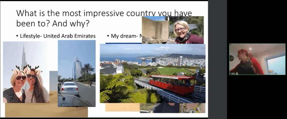 接下来Faith老师分享了自己在阿联酋和新西兰精彩的旅行体验和工作经历,对不同国家文化的理解以及与各国员工之间难忘的友谊。部分同学积极的分享了自己的海外游学经历。Faith老师希望同学们能在游学中体验小班教学、全英授课,改变思维、体会批判性思维,感受多样的世界,认识全新的自己。最后,本次活动在Faith老师对同学们的美好寄语中温馨落幕。本次交流会内容丰富,拓宽了同学们的视野,活跃了课余生活氛围,促进了师生的相互了解。