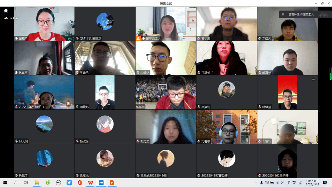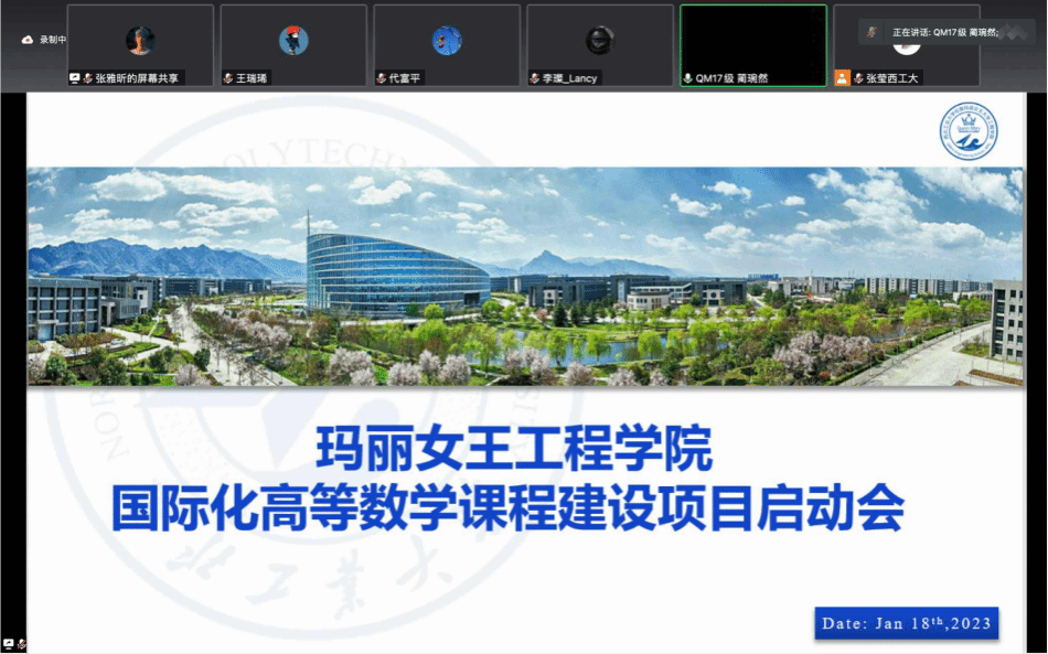 1月18日下午,国际化高等数学课程建设项目启动会正式开始。玛丽女王工程公司党委书记代富平、数学与统计公司党委副书记张莹等42名参与课程建设项目的同学出席会议。会议由公司2021级本科生张雅昕主持。