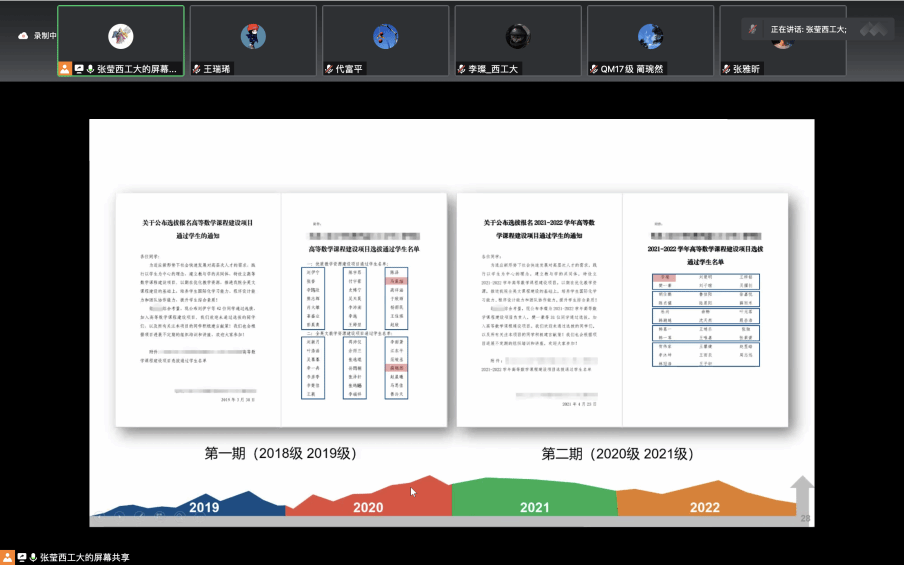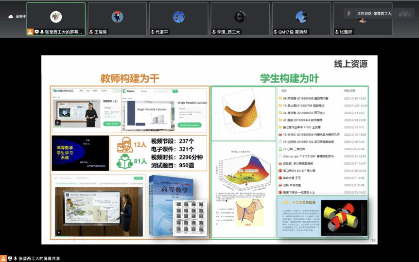 张莹老师向大家介绍了高等数学课程建设项目的开展情况与所获成果,表示《Single Variable Calculus》是MOOC平台英文版高等数学点击量最高的课程。她鼓励大家继续传承项目有益经验,推动课程与国际接轨,提升国际化学习能力。最后,张莹老师向大家介绍了下一步工作计划,包括MOOC的优化与完善、新媒体平台和终端的构建和运营等,鼓励同学们根据自己对课程的理解与思考,为课程的发展提出新的想法和建议。