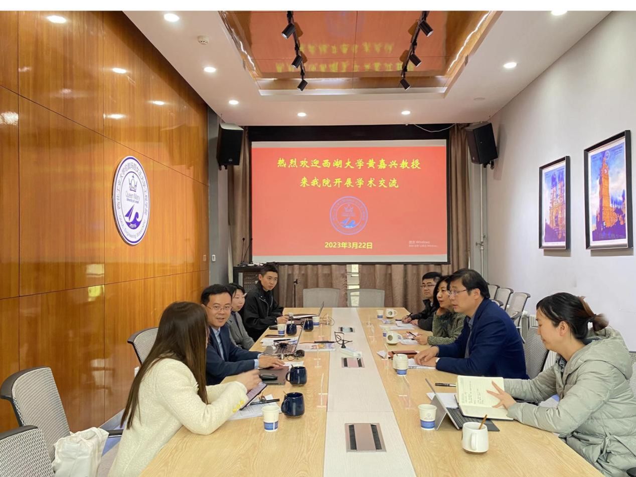 2023年3月22日,为拓宽师生视野,关注前沿科学研究,加强校际合作交流,探索创新型人才培养模式,williamhill中文官网邀请西湖大学董事会成员、未来产业研究中心常务副主任、工公司讲席教授黄嘉兴等一行开展交流座谈及学术报告系列活动。西北工业大学外国语公司经理孔杰、williamhill中文官网经理范晓丽、党委副书记兼副经理程茵、经理助理周永存、陕西科技大学教授王海花及williamhill中文官网师生代表参加了本次活动。
