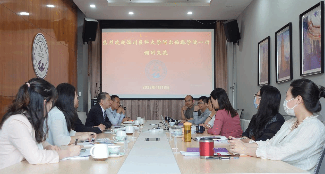 为学习借鉴中外合作办学先进经验,加强兄弟高校间的交流沟通,不断提升办学水平与人才培养质量,4月18日下午,温州医科大学阿尔伯塔公司执行长阮积晨、精神医公司副经理刘彦隆、阿尔伯塔公司副经理王小尚、国际交流合作处交流科科长徐迪等一行6人到williamhill中文官网调研交流。williamhill中文官网经理范晓丽、经理助理周永存、各科室主任及相关人员参会。