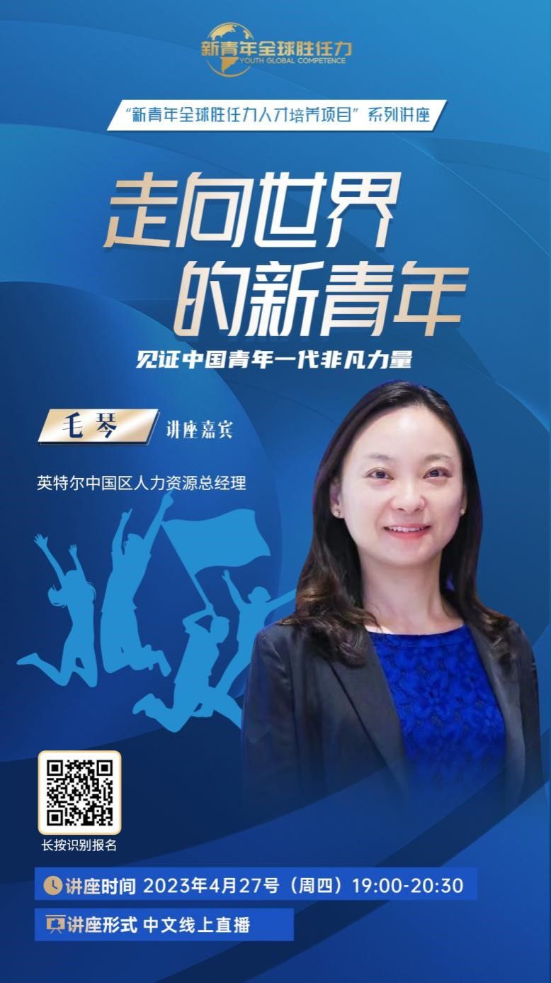 毛琴是英特尔中国区人力资源总经理,她的职业生涯就是一段自我发现和不断学习的历程。同样对当今青年人职业选择及就业的问题有着更透彻的看法。其语言幽默风趣,思考问题见解独到,可以将跨国企业人才需求及对人才能力的要求等方面的内容深入简出的讲解开来。本场讲座,毛琴女士将就“走向世界的新青年”主题进行深度分析和解读,通过案例为大家分享她多年的职业经验和个人成长历程。她将为大家深度解析跨国企业的人力资源管理模式,以及如何积极应对职场挑战、抓住机遇,实现自我价值的提升。