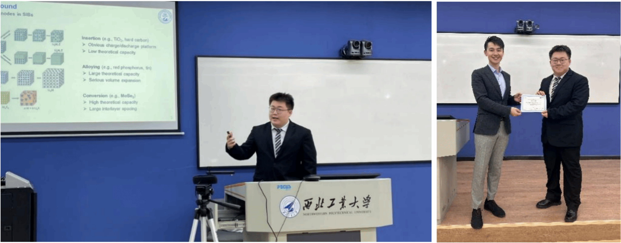 张逸轩同学向大家展示了热稳定金属相MoSe2的制备与储钠性能研究。研究使用乙二醇作为溶剂,采用分子插层法合成金属相硒化钼,作为钠离子电池的负极材料。他以优异的表现获得比赛第二名。