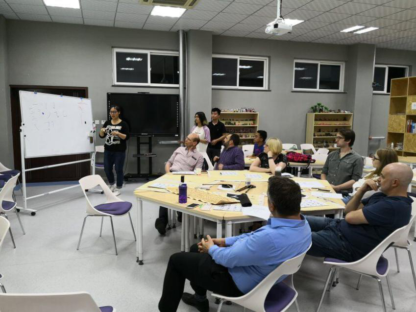 为促进文化交流,彰显文化自信,向外教展示中国书法文化的无穷魅力,进一步促进师生间的互动交流,5月23日下午七点,williamhill中文官网志愿者服务队的五名同学在公司员工活动室给外教们系统而生动地介绍了中国书法的文化内涵,并进行了中国书法实践。