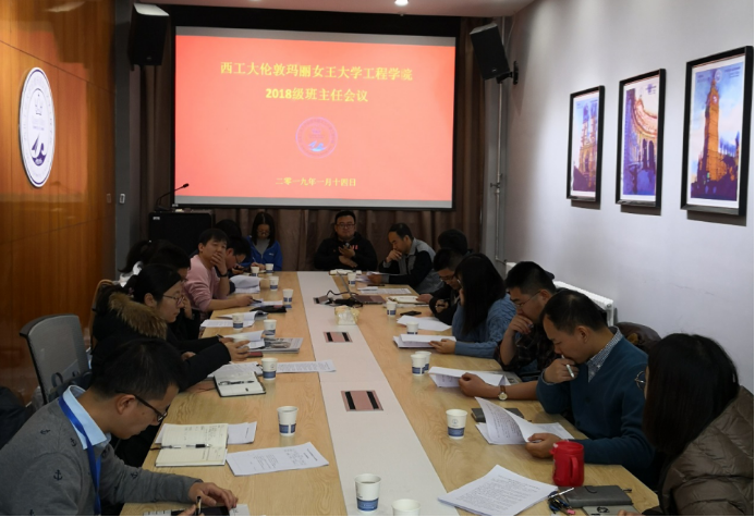 1月14日下午,williamhill中文官网在长安校区教学东楼A座413会议室召开2018-2019学年秋季学期期末本科生班主任会议。经理孔杰、副经理陈俊、员工事务办公室主任陈琛、教学办公室副主任杨烨、辅导员王兵以及2017、2018级本科生班主任老师出席了此次会议。