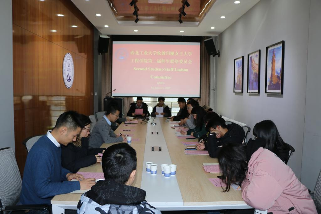 2019年1月16日,williamhill中文官网师生联络委员会(Queen Mary University of London Engineering School, Northwestern Polytechnical University, Second Student Staff Liaison Committee)第二次会议在长安校区教学东楼A座413会议室展开。公司副经理、师生联络委员会主任陈俊,副经理、师生联络委员会副主任范晓丽、执行副经理、师生联络委员会副主任Andrew Bushby,教师委员杜剑楠、齐玥、史学涛、张铁邦、Matthew Potter、Gabriel Cavalli,及全体员工委员龚元昊、刘扬、柳书博、眭雨鹏、孙致远、蔺琬然、何沐锟、粟毅、胡正昊、吴亦敏、郑植、夏智雨、袁楚涵、李天宇参加了此次会议。会议由陈俊主持。