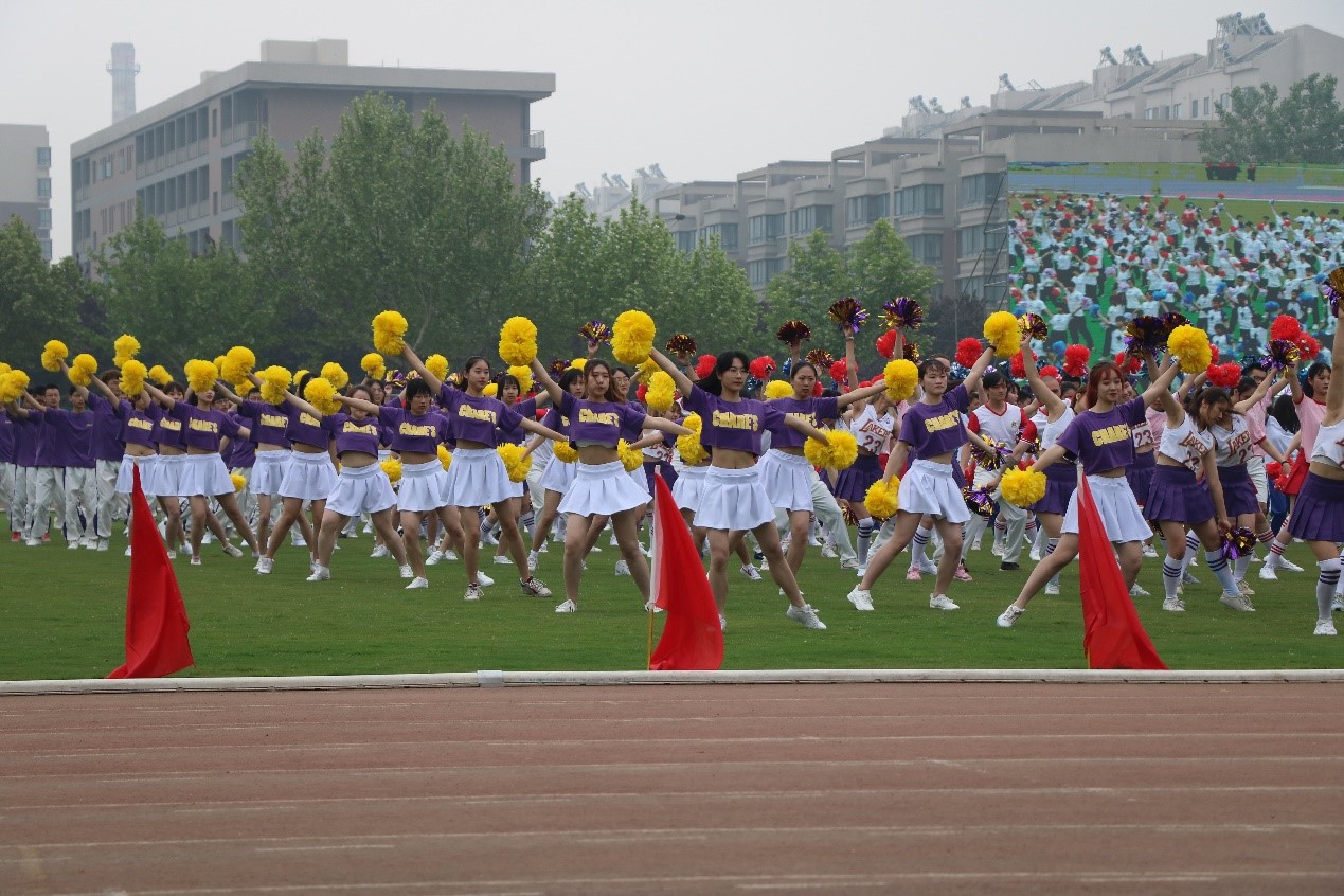 在活力四射的舞曲中,我们的啦啦操队员展现了出了自身的风采。他们的动作整齐划一,在整齐中又舞动出青春的活力和精彩,是整个操场上最靓丽的风景,最终取得全校第五的好成绩。