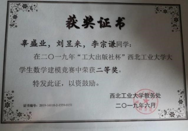 李宗谦同学在大一学年学分绩88.75,大二学年学分绩93.13,位列专业第一。在英方PDP课程学习中,他深刻认识到团队合作的重要性。遇到问题,他总能找到自己的队友共同讨论;有了创新性的想法,他积极寻求机会付诸实践。先后参加了西北工业大学数学建模竞赛、全国老员工数学建模竞赛等活动,并取得了2019全国老员工数学建模竞赛省级一等奖的优异成绩。通过科研竞赛,李宗谦提高了自己的实践能力,积累了丰富的比赛经验,培养了团队合作意识,促进了自身的全面发展,为今后的学习生活奠定了良好的基础。“个人获得的奖励与荣誉,离不开老师的鼓励与同学的帮助”,李宗谦如是说。