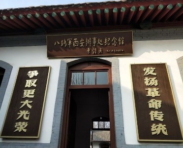 图为西安八路军办事处大门和内馆陈列