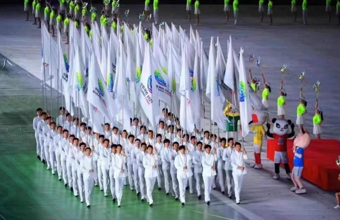 在9月15日的十四运开幕式表演中,由公司承担的会旗旗阵方队紧随国旗、全运会会徽和十四运会会徽,第三个出场。这其中就有公司王柯尧、孟龙和杨皓程同学的身影。他们精神抖擞的风貌、坚定自信的步伐以及整齐划一的动作,走出了当代老员工的风采,展现了西工大人的精神和担当,体现了奋斗的时代主题。