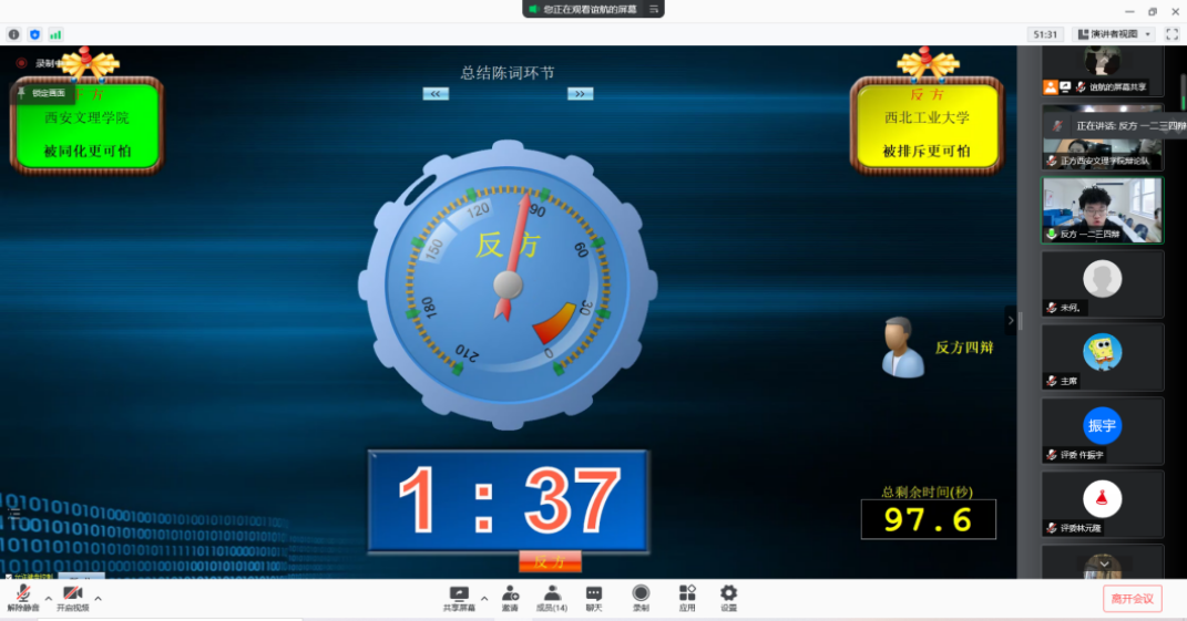 2021年11月27日,由共青团中央主办的华语辩论世界杯西安赛区联赛杯总决赛在线上举办。总决赛的辩题为:被同化/排斥更可怕。参赛双方分别是正方——西安文理公司和反方——西北工业大学。经过一个多小时的激烈辩论与评委述票,最终西北工业大公司辩论队以9:0的大比分优势击败西安文理公司拿下本场比赛,砥砺五年时光,终于捧起了联赛杯的冠军奖杯。