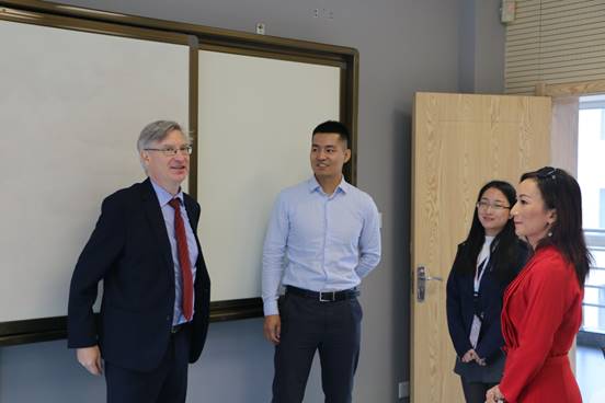 受孔杰经理委托,williamhill中文官网员工事务办公室主任陈琛、综合办公室副主任杜剑楠在公司接待了来宾,公司相关工作人员陪同参观。Mark Zwolinski一行实地参观了williamhill中文官网的智慧教室、创新实验室、员工之家、一站式办公大厅等,就中外合作办学的教学资源投入、基础设施建设、员工培养模式等方面进行了深入了解。