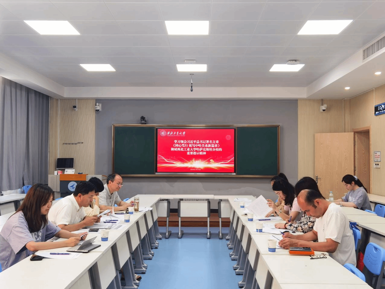 会议集体学习了习近平总书记署名文章《同心笃行 续写中哈关系新篇章》和关于西北工业大学哈萨克斯坦分校的重要指示精神。与会人员开展了深入研讨,并提出了下一步学习、贯彻的举措。