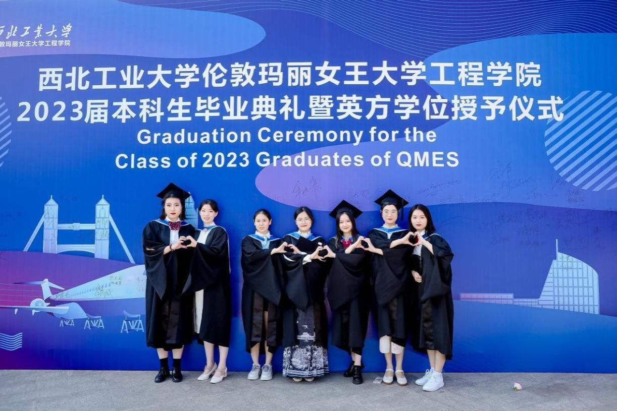 On the afternoon of June 25, the graduation ceremony and British degree awarding ceremony of QMES was held in the Ao'xiang Student Center, Chang'an Campus. Song Baowei, President of NPU; Colin Bailey, President of QMUL; Zhang Yanning, Vice President of NPU; Academician Wen Wang, Vice President of QMUL; Li Jinshan, Dean of School of Materials Science and Member of JAC; Gabriel Cavalli, Executive Vice Dean of QMES; Andy Bushby, a JAC member; Wang Haipeng, Director of Academic Affairs Office and Member of JAC; Zhang Fuli, Director of International Cooperation Office and Member of JAC; Han Suomin, Director of Finance Department and Member of JAC; Zhang Yingqun, Director of Education Foundation Office; Sonal Hathi, Director of QMUL Alumni Association; Jing Liu, MEMA China Manager of QMUL; Faith Nightingale, Director of Teaching Affairs of QMES; Fan Xiaoli, Dean of QMES; Dai Fuping, Secretary of the Party Committee and Vice Dean of QMES; Cheng Yin, Vice Dean of QMES; the faculty and staff of QMES; and all graduates of the class of 2023 and representatives of their relatives and friends attended the graduation ceremony which was presided over by Dean Fan Xiaoli.