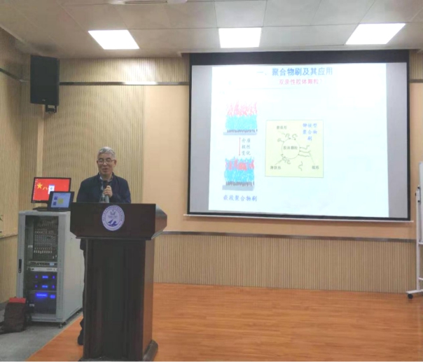 During the lecture, Professor Liu Honglai introduced polymer brushes and their applications to students in detail from five aspects, combining his teaching and scientific research practice in the field of Chemical Thermodynamics for many years. In his lecture, the performance of the heterogeneous catalytic system was improved by regulating the hydrophilicity of the solid surface, and the concept of “environmental protection and green” was put forward in the heterogeneous catalytic reaction process. And he introduced the density functional theory and its application of spherical fluid structure, chain fluid and square well chain fluid in confined space.