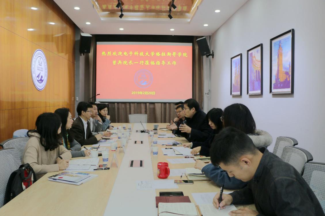 Dean Zeng Bing introduced the establishment background, majors, faculty, student management and operation of Glasgow College. Subsequently, the two sides conducted detailed and in-depth exchanges and discussions on the development model, teaching and scientific research work, student management and the extension of characteristics of Sino-foreign cooperative education.