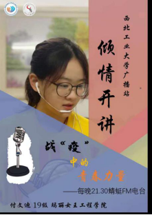 During the epidemic, Fu Wendi, from Wuhan city, Hubei Province, deeply felt the impact of the COVID-19 on people and wanted to make her own contributions to the epidemic prevention.On February 4, she received an invitation from NPU radio station to participate in the poem recitation with music to combat the epidemic. Since then, she had also participated in a number of publicity activities to fight against the epidemic.