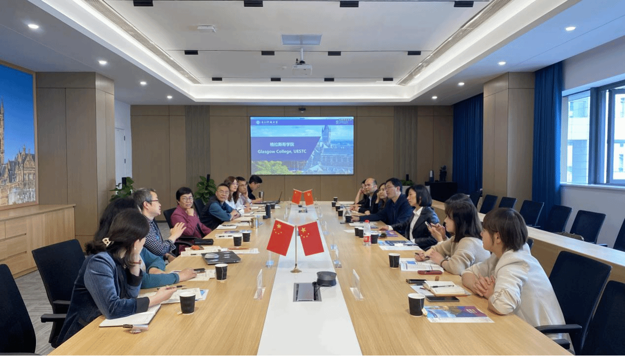 On the afternoon of April 12, Di Aiying, Party Secretary and Vice Dean of Glasgow College, UESTC; Dean Zhu Ce; Li Ye, Deputy Secretary of the Party Committee; Xu Shizhong, Vice Dean and Director of Student Affairs Center; and 5 Deputy Directors of Student Affairs Center in charge of teaching, students, practice teaching and international exchange met the team. At the meeting, Di Aiying and Zhu Ce first warmly welcomed the visitors, and introduced the organizational structure, major setting, talent training system, international faculty construction, enrollment and graduates’ development of Glasgow College. On behalf of QMES, Fan Xiaoli expressed gratitude to the college for its warm reception and experience sharing. She also briefly introduced the development status, institutional setup, teaching staff, teaching system, and students’ further study and development of QMES. Dai Fuping introduced the Party building, Branch construction and development of student Party members of QMES. Subsequently, the two sides conducted enthusiastic communication on faculty construction, student practice, school-enterprise cooperation, enrollment and further study. Dai Fuping pointed out that the Party building of Glasgow College featured various forms and remarkable results, which fully epitomized the Chinese-foreign cooperative talent-training model with Chinese socialist characteristics. Fan Xiaoli said that Glasgow College and QMES have many similarities in the founding background, and the advanced experience and characteristic practices of Glasgow College in the field of Chinese-foreign cooperative education have provided significant reference value for QMES. The two sides should deepen and expand the forms and fields of cooperation and exchange, work together to make progress, and cultivate more top-notch innovative talents with international vision and keeping their country in mind.